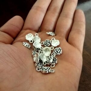 OXIBEADS0015- 50 GM PACK OF FLORAL MOTIF GERMAN SILVER METAL BEADS