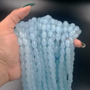 OVALBEADS01- 1 STRAND SKYBLUE 10 X 8 MM OVAL GLASS BEADS