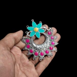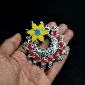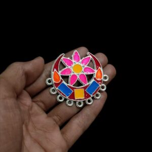 MEENAP0228- ARNAS 1 PC PACK OF MEENAKARI SILVER PALTED FLORAL DESIGNER MOTIF OXIDIZED PENDANT