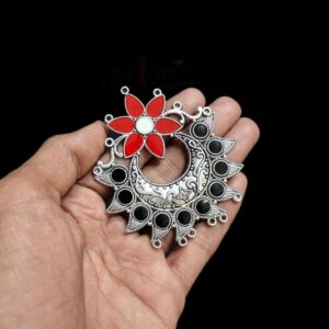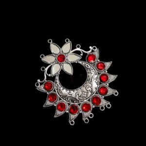 MEENAP0233- ARNAS 1 PC PACK OF RED STONE SILVER PALTED FLORAL DESIGNER MOTIF OXIDIZED PENDANT