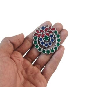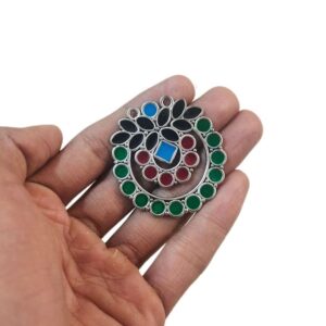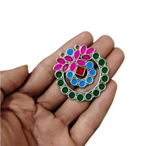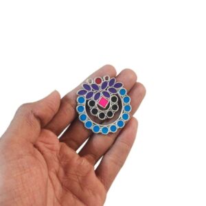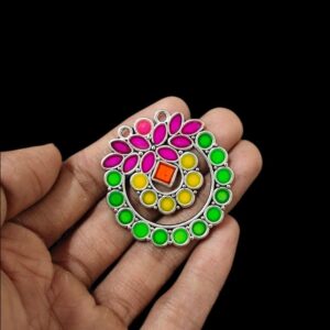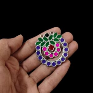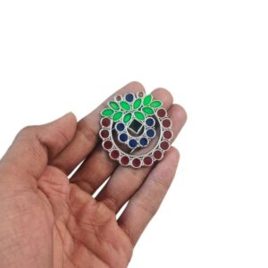 MEENAP0258- ARNAS 2 PCs PACK OF MULTI COLOR MEENAKARI SILVER PALTED DESIGNER MOTIF OXIDIZED PENDANT