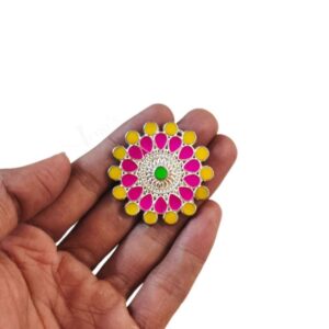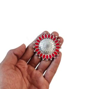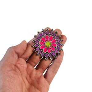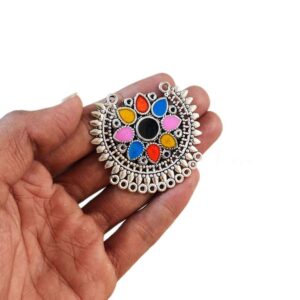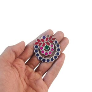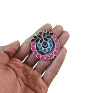 MEENAP0002- ARNAS 1 PC PACK OF RED GREEN MEENAKARI SILVER BASED BIG OXIDIZED PENDANT