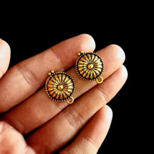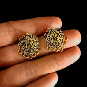 TOPg0029- 3 PAIRS PACK OF GERMAN GOLDEN | OXIDIZED ROUND DEVI MOTIF GOLDEN SINGLE LOOP STUD TOP FOR EARRING MAKING