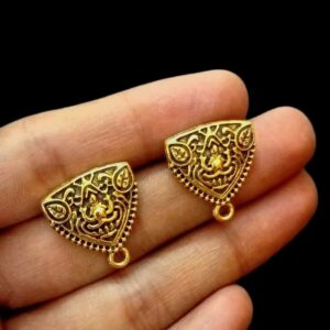 TOPg0026- 3 PAIRS PACK OF GERMAN GOLDEN | OXIDIZED TRIANGLE MOTIF GOLDEN SINGLE LOOP STUD TOP FOR EARRING MAKING
