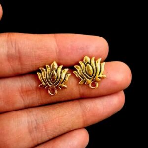 TOPg0035- 5 PAIRS PACK OF GERMAN GOLDEN | OXIDIZED LOTUS MOTIF GOLDEN SINGLE LOOP STUD TOP FOR EARRING MAKING