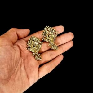 TOPg0038- 5 PAIRS PACK OF GERMAN GOLDEN | OXIDIZED FLORAL MOTIF GOLDEN SINGLE LOOP STUD TOP FOR EARRING MAKING