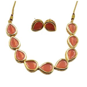 KUNDAN0026- ARNAS PEACH STONE GOLD PLATED KUNDAN CHOKER NECKLACE AND EARRINGS COMBO PACK FOR NECKLACE MAKING