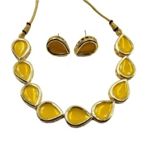 KUNDAN0027- ARNAS YELLOW STONE GOLD PLATED KUNDAN CHOKER NECKLACE AND EARRINGS COMBO PACK FOR NECKLACE MAKING