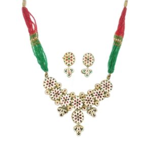 KUNDANP0042- ARNAS WHITE STONE GOLD PLATED KUNDAN NECKLACE AND EARRINGS COMBO PACK FOR NECKLACE MAKING