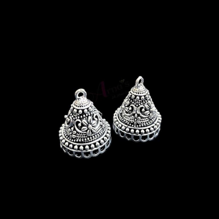 JHUMKAs0049- 3 PAIRS PACK OF GERMAN SILVER | OXIDIZED SILVER JHUMKIES FOR EARRING MAKING3 PAIRS PACK OF GERMAN SILVER | OXIDIZED SILVER JHUMKIES FOR EARRING MAKING