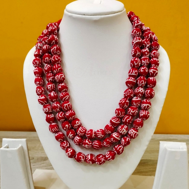 3LDORI10- ARNAS 1 PC PACK OF THREE LAYER FABRIC AND BEADS RED-WHITE SCRIPTING TASSEL | DORI FOR JEWELLERY MAKING