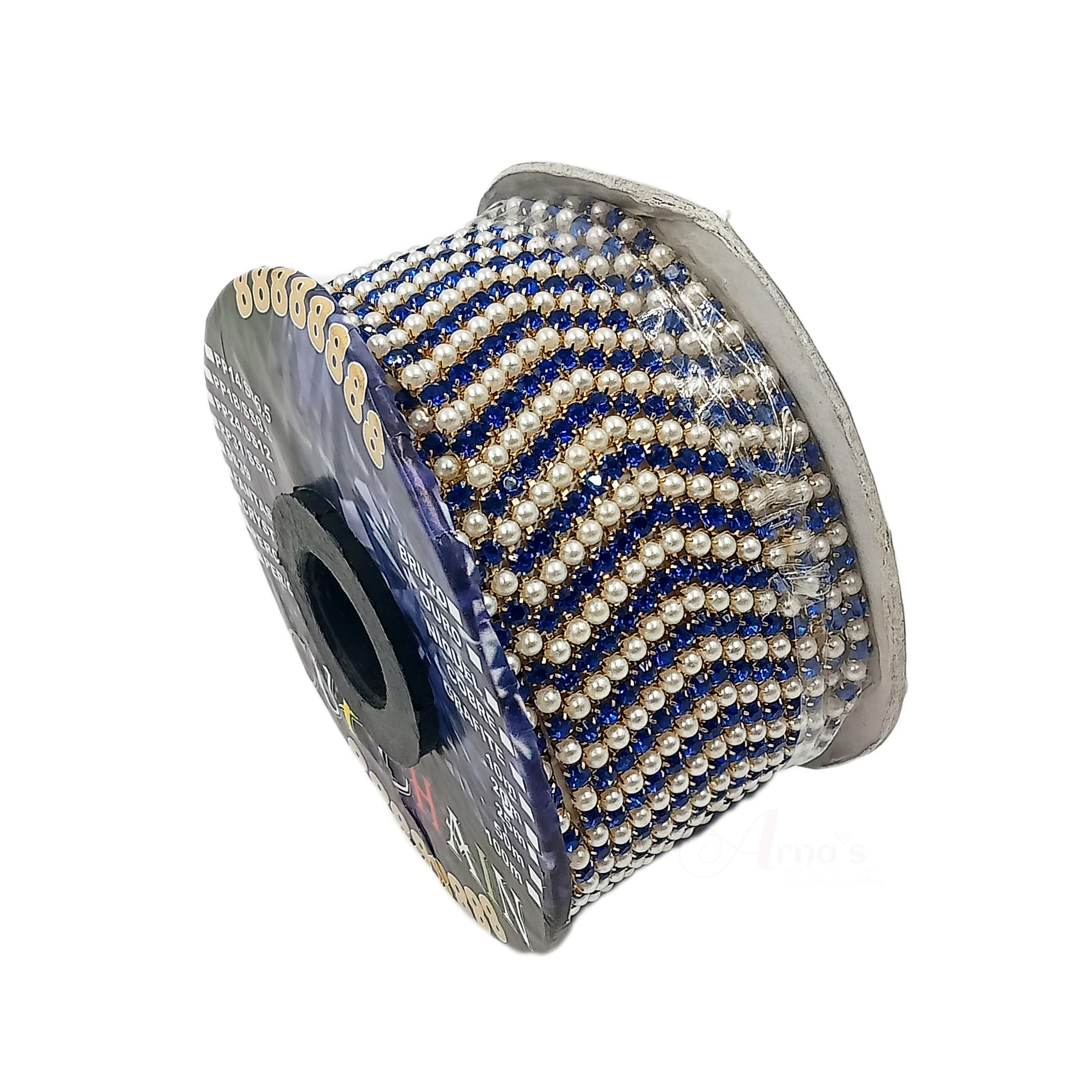 STONECHAIN008- 5 MTR PACK OF GOLD PLATED BLUE STONE PEARL CHAIN FOR JEWELLERY MAKING AND DECORATION