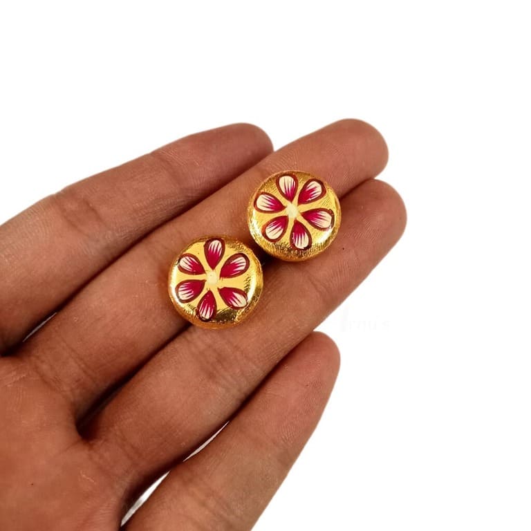 ARTMETAL0010- ARNAS 2 PCS PACK OF GOLD PLATED BRUSHED HAND PAINTED ART METAL ROUND BEADS