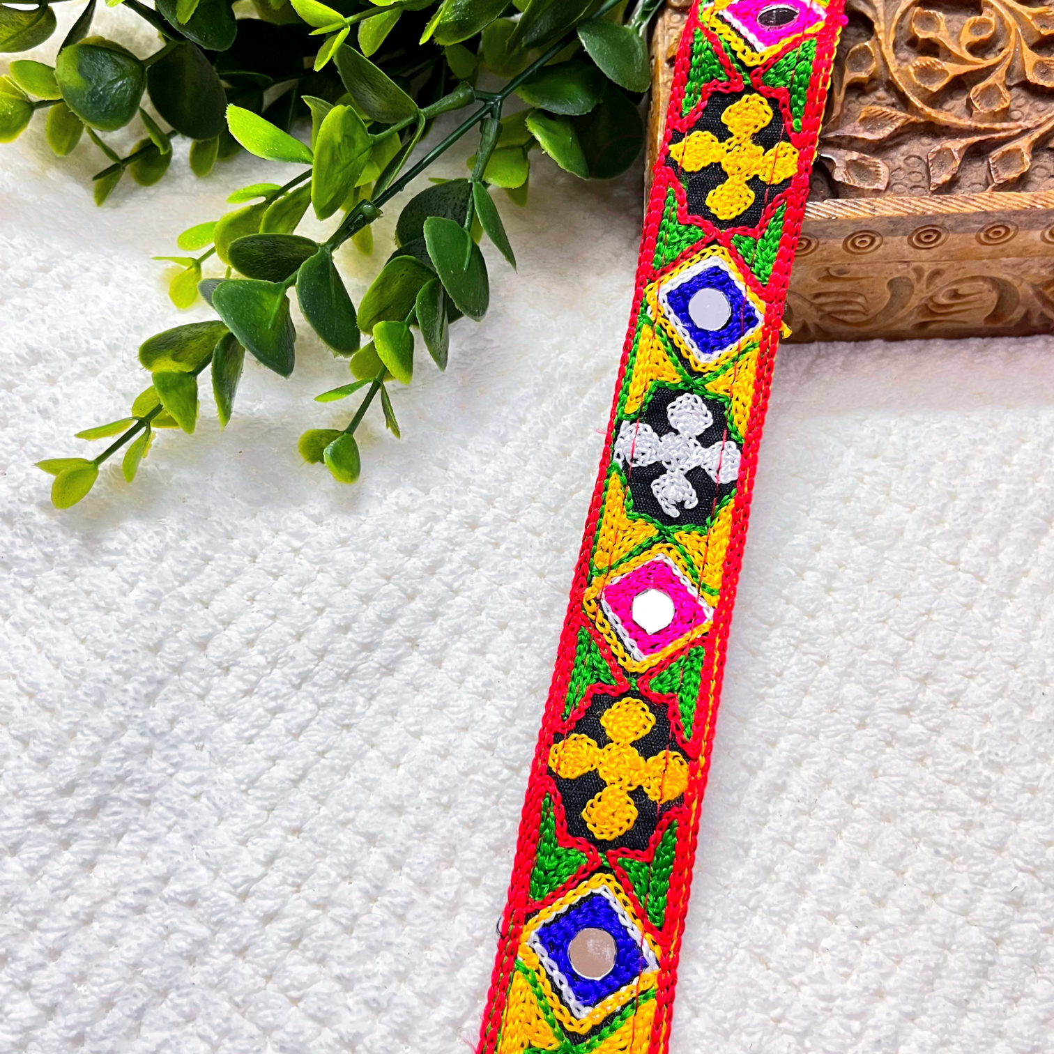 ARNAS 3 CM WIDTH (1 METER) NAVRATRI TRADITIONAL MIRROR SETTING GAMTHI LACE | MULTICOLOR LACE FOR SAREE LAHENGA AND JEWELLERY